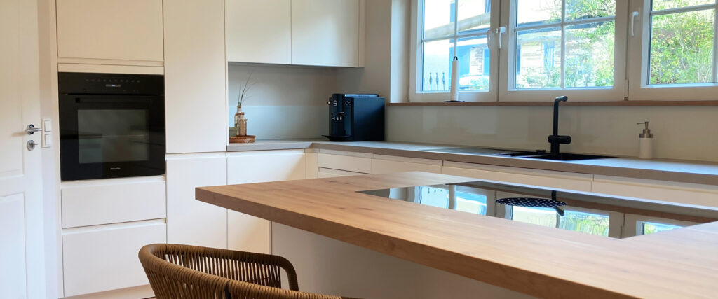 Für dieses anspruchsvolle Küchenprojekt haben wir eine stilvolle und funktionale Küche mit Schüller Küchen realisiert. Die Kombination aus modernen Materialien, hochwertiger Technik und durchdachter Gestaltung sorgt für eine harmonische und zeitlose Kücheneinrichtung, die sowohl ästhetisch als auch praktisch überzeugt.